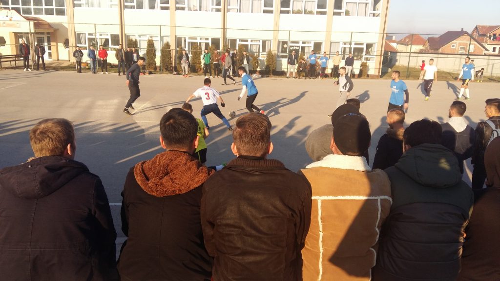 Qindra shikues duke ndjekur një lojë në Turneun tradicional në futboll të vogël “Smira 2017”.