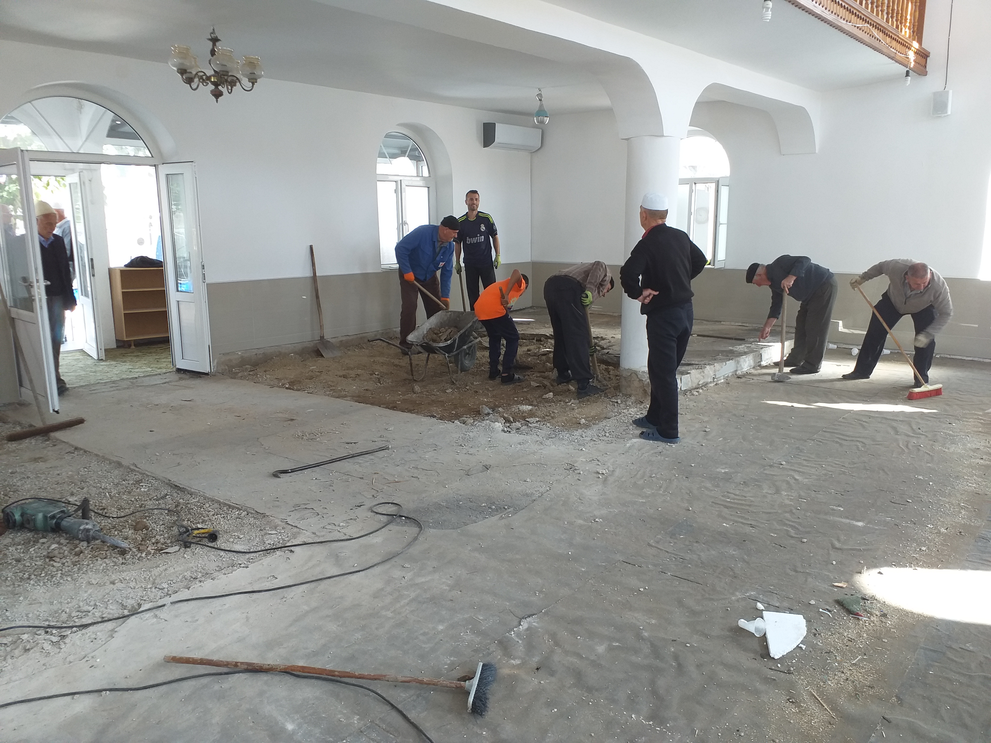 Disa besimtarë po e bëjnë gati dyshemenë për instalimin e ngrohjes qendrore në Xhaminë e Smirës. Iniciativa ka rrjedhë nga Këshilli i Xhamisë, por është përkrahur edhe nga bashkëvendësit smiras dhe mërgimtarët.